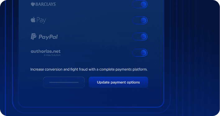 Erbjud de ledande "köp nu"-knapparna optimalt placerade på produktbeskrivningssidor, varukorgssidor och högst upp i kassan. Du kontrollerar urval och ordning. Ledande plånböcker inkluderar PayPal, Amazon Pay, Amazon Buy With Prime, Venmo, Apple Pay, Google Pay med flera.