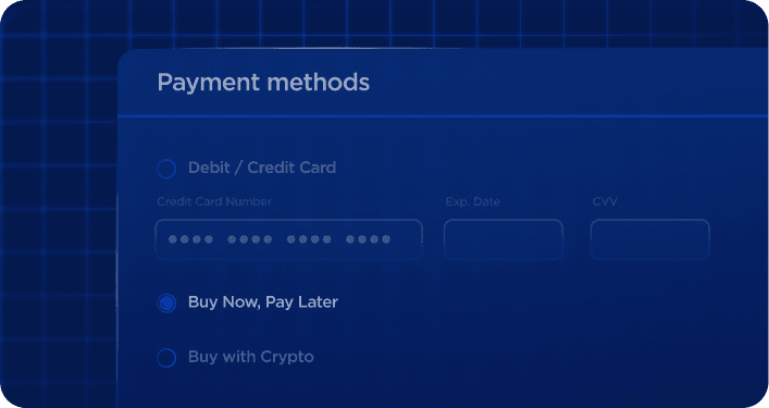 Inkludera dynamisk plånboksplacering, Köp nu, betala senare (BNPL) och krypto, så att kunderna är fria att göra ultimata köpval.