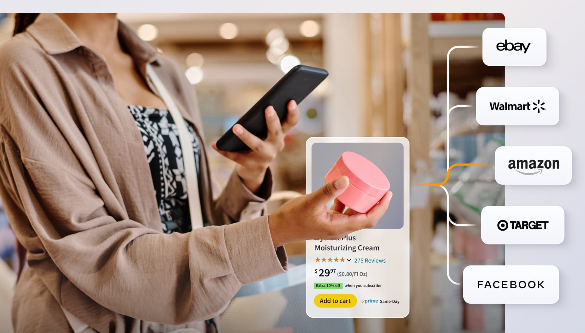 Nå ut till fler kunder via ledande marknadsplatser, sociala media, sök- och annonskanaler.