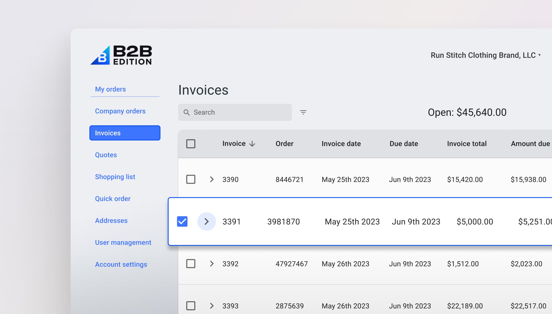 När ditt företag växer kan du investera i vår prisbelönta B2B Edition som har de avancerade B2B-funktioner som du och dina köpare vill ha (företagskonton, offerter, fakturor, arbetsflöden för godkännande av köpare och mycket mer), allt på den plattform som är utformad för att få ditt företag att växa.