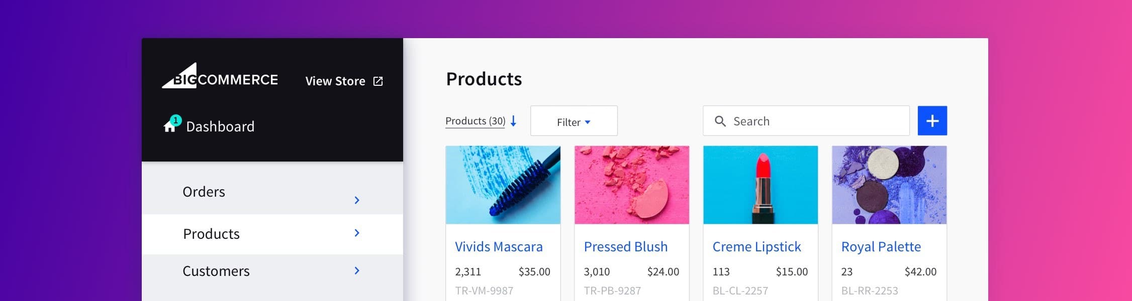 Hantera hela din produktkatalog i BigCommerce-kontrollpanelen eller publicera den från ett externt system genom katalog-API:t.
